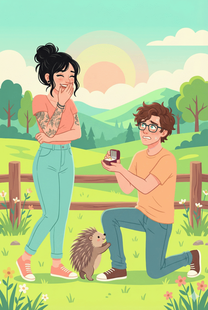 “This wasn’t how I planned it,” Leo said quickly. “I had a whole thing. Coffee at sunrise. A speech. Very romantic. But then the otter emergency happened and now we’re standing in a clinic that smells like disinfectant and there’s a baby otter snoring in the background and this is possibly the least romantic proposal setting in history—”